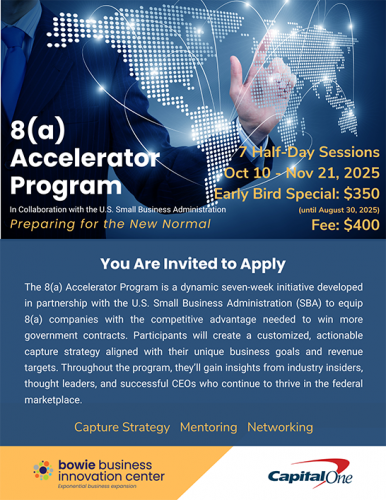 The Center of Excellence for 8(a) Government Contracting, established through a dynamic partnership between Bowie State University (BSU) and Bowie Business Innovation Center (Bowie BIC), will serve as a national model for capacity building among 8(a) firms and Historically Black Colleges and Universities (HBCUs). This innovative initiative will expand the proven Bowie BIC 8(a) Accelerator Program, scaling its impact across America’s HBCU network to foster sustainable growth, collaboration, and excellence in federal government contracting.